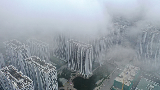 Sương mù dày đặc các tòa nhà cao tầng ở Hà Nội vào một buổi sáng tháng 9 năm 2019