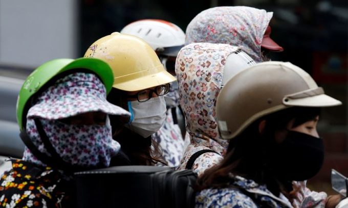 Người dân đeo khẩu trang bảo vệ khi đi trên đường phố Hà Nội, Việt Nam. Ảnh của Reuters