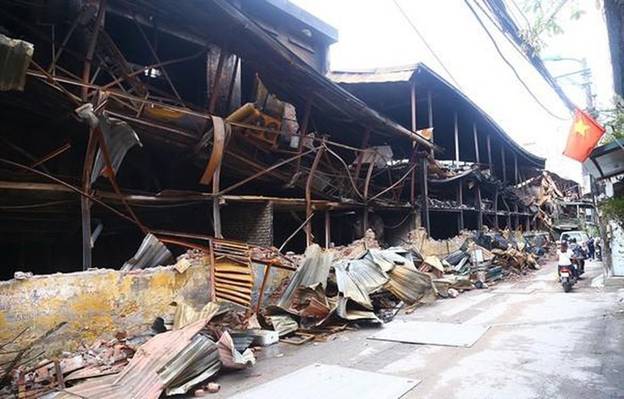 Hiện trường vụ cháy công ty Rạng Đông thời điểm chưa được phủ bạt.