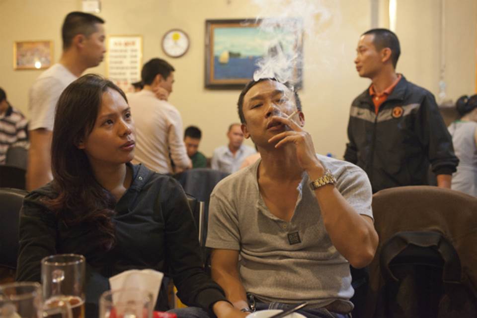 Một người đàn ông Việt Nam hút thuốc trong nhà hàng