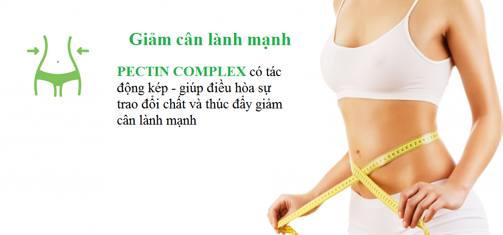 Thực phẩm bảo vệ sức khỏe PECTIN COMPLEX cũng là sản phẩm rất phổ biến đối với phụ nữ, vì nó có tác dụng tăng gấp đôi hiệu quả điều hòa sự trao đổi chất và giảm cân. Thành phần hoạt tính - pectin củ cải đường và pectin táo bao bọc tất cả các chất cặn bã và các chất độc hại, sau đó loại bỏ chúng ra khỏi cơ thể. Phức hợp vitamin, khi đi vào trong ruột, sẽ "đánh thức" sự trao đổi chất và tạo nên cơ chế giảm cân khỏe mạnh. Do cơ thể được cung cấp đủ vitamin, gan và thận có thể đối phó tốt hơn với việc loại bỏ các chất có hại ra khỏi cơ thể, từ đó giúp giảm trọng lượng dư thừa. Ngoài ra, PECTIN COMPLEX còn giúp loại bỏ chất lỏng dư thừa – một trong những nguyên nhân gây thừa cân - ra khỏi cơ thể