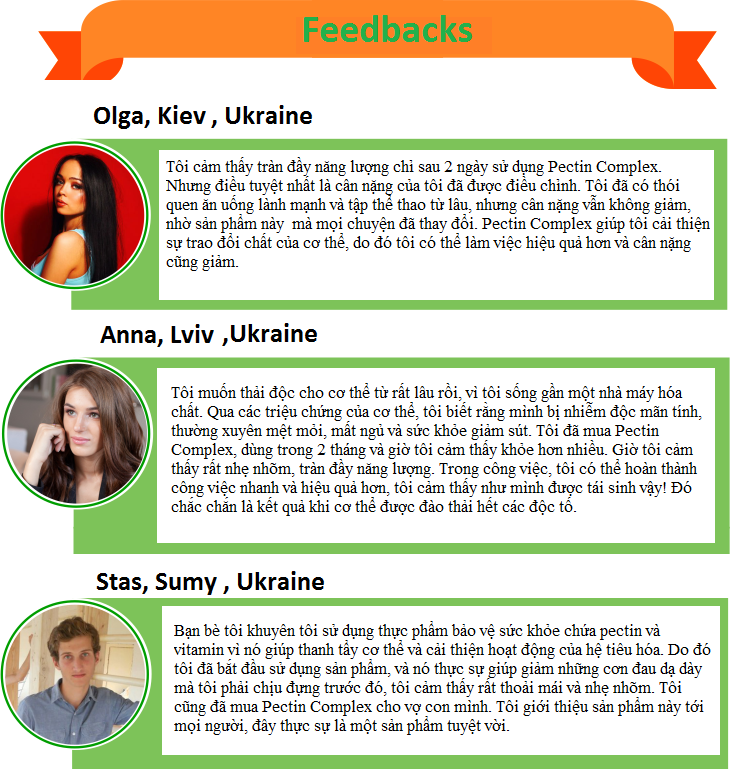 Thực phẩm bảo vệ sức khỏe đến từ Ukraina PECTIN COMPLEX giúp loại bỏ các chất độc hại tích lũy trong cơ thể một cách nhẹ nhàng và hiệu quả. Thành phần chính của sản phẩm là là hai nguyên liệu tinh khiết tự nhiên và được chọn lọc một cách đặc biệt - pectin củ cải đường và pectin táo, cùng với phức hợp vitamin mạnh mẽ.