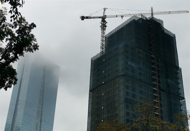 Tòa nhà Lotte trên đường Đào Tấn ở Hà Nội bị che mờ trong sương khói. Công việc xây dựng đã bị đổ lỗi là một trong những người đóng góp cho chất lượng không khí suy giảm của thành phố.