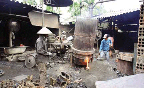 Quy trình tái chế nhôm tại xưởng gia đình, làng Mẫn Xá