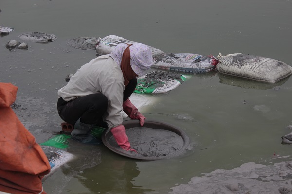 Chất thải nhôm với các hạt chì gây ô nhiễm các hồ địa phương ở làng Mẫn Xá.